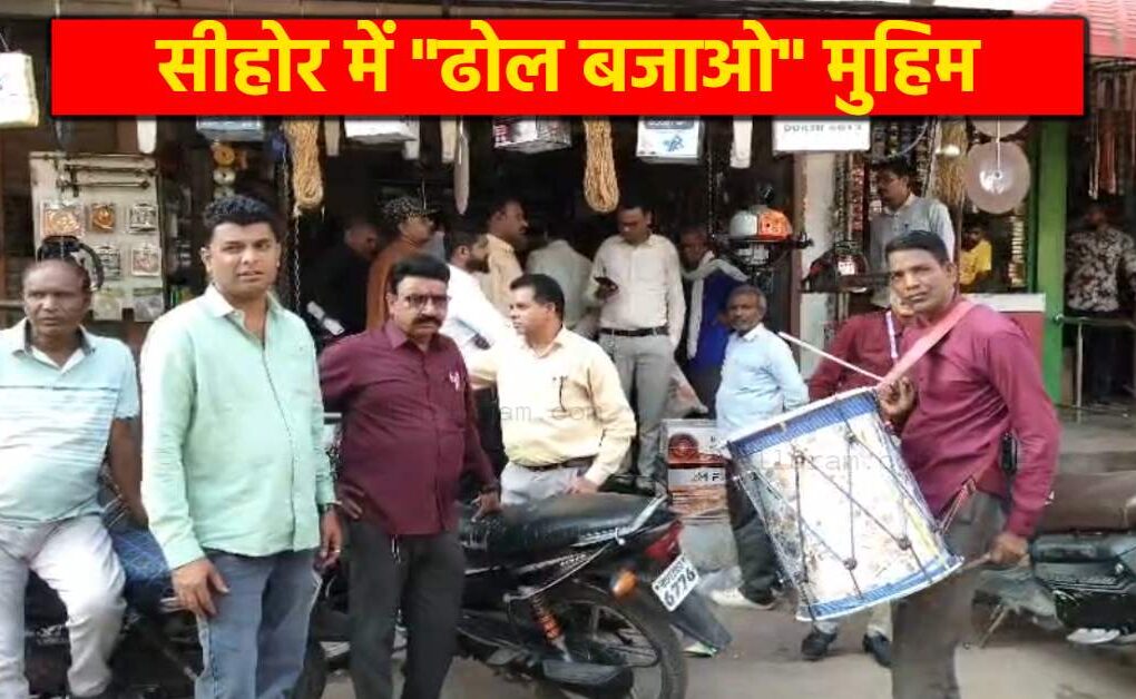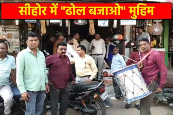 सीहोर में ढोल बजाकर वसूली अभियान, टैक्स बकायादारों को संपत्ति कुर्की की चेतावनी