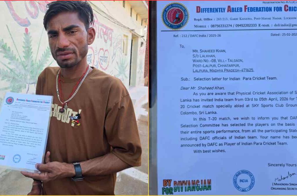 खजुराहो। मध्यप्रदेश के Chhatarpur जिले के एक छोटे से गांव से निकले Shaheed Khan ने अपने संघर्ष और मेहनत से ऐसा मुकाम हासिल किया है, जिसने पूरे इलाके को गर्व से भर दिया है, उनका चयन भारतीय पैरा क्रिकेट टीम में श्रीलंका दौरे के लिए हुआ है। Shaheed Khan अब 3 अप्रैल से Colombo में…