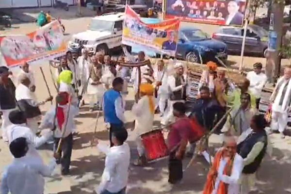 गेहूं खरीदी शुरू होते ही खुशी से झूमे किसान, डांडिया नाच कर मनाया जश्न
