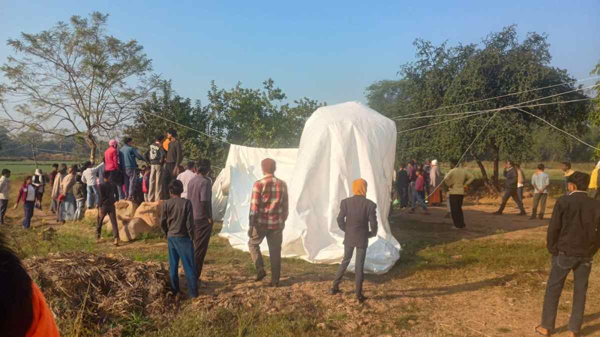शिवपुरी। मध्य प्रदेश के शिवपुरी जिले में उस वक्त हड़कंप मच गया, जब एक खेत में आसमान से अचानक एक बड़ा बैलून आकर गिर पड़ा। बैलून इतना विशाल था कि उसे देखते ही ग्रामीणों में दहशत फैल गई और देखते ही देखते मौके पर लोगों की भीड़ जुट गई। मामला नरवर तहसील के नरूआ गांव का है, जहां सुबह करीब 6 बजे खैरु रावत के खेत में यह बैलून गिरा हुआ मिला।