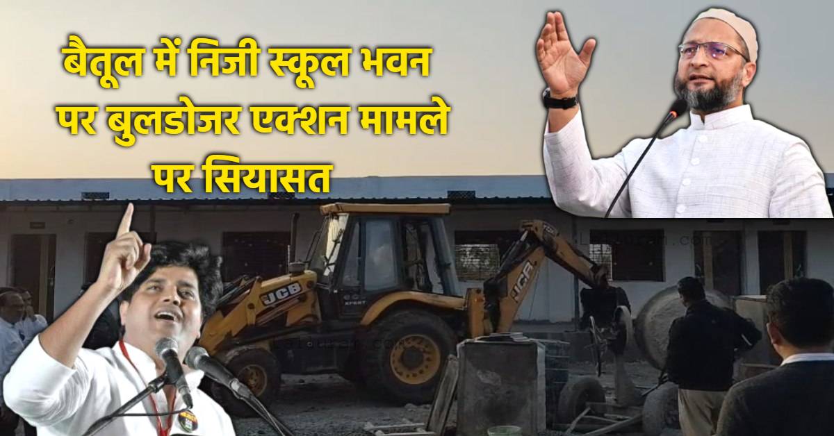 बैतूल। मध्य प्रदेश के बैतूल जिले में निजी स्कूल भवन पर हुई बुलडोजर कार्रवाई का मामला अब सियासी तूल पकड़ता जा रहा है। इस कार्रवाई को लेकर देश के कई बड़े नेताओं की तीखी प्रतिक्रियाएं सामने आई हैं। एआईएमआईएम प्रमुख अससुद्दीन ओवैसी, कांग्रेस सांसद इमरान प्रतापगढ़ी और सांसद सुप्रिया सुले ने इस घटना की कड़ी निंदा की है।