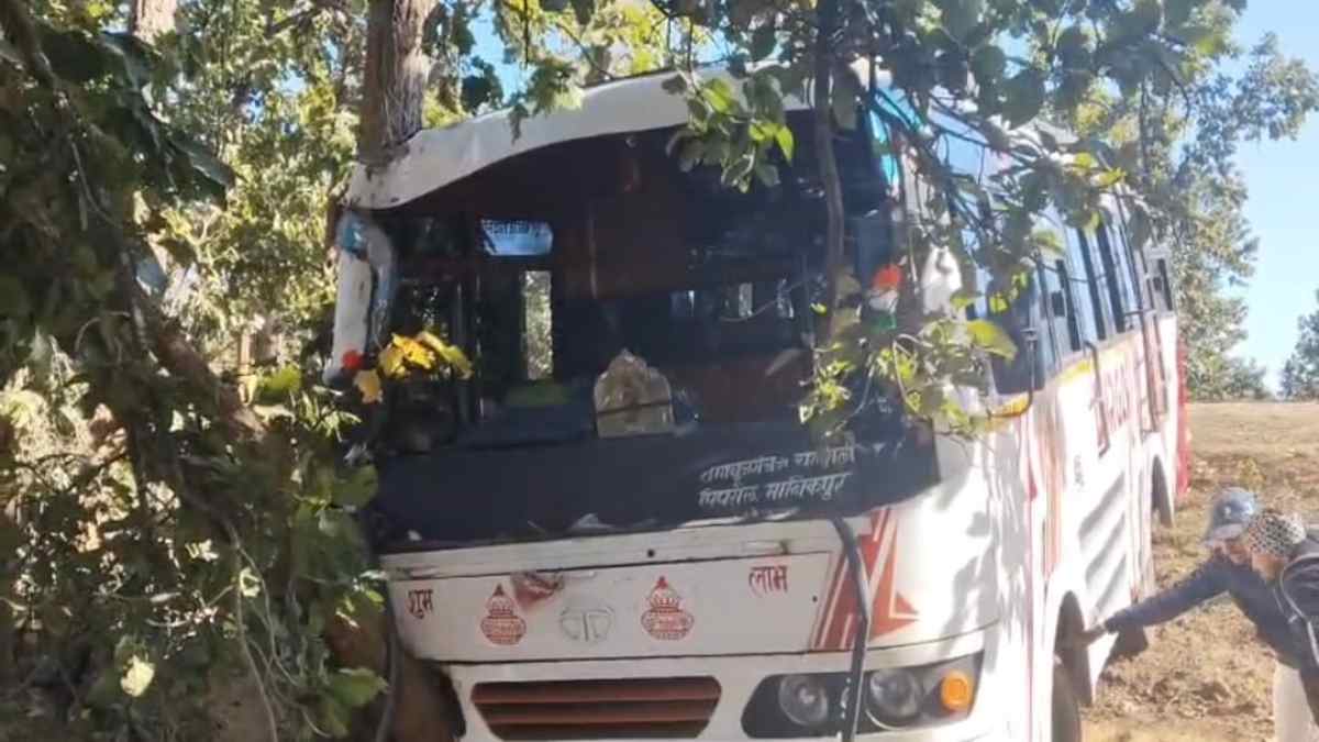 बारात में जाने से पहले पलटी खाली बस, पेड़ से टकराई, टला बड़ा हादसा