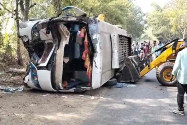 नर्मदापुरम से पिपरिया जा रही बस पलटी, बड़ा सड़क हादसा: 11 से ज्यादा यात्री घायल, कांच तोड़कर बाहर निकाले गए लोग