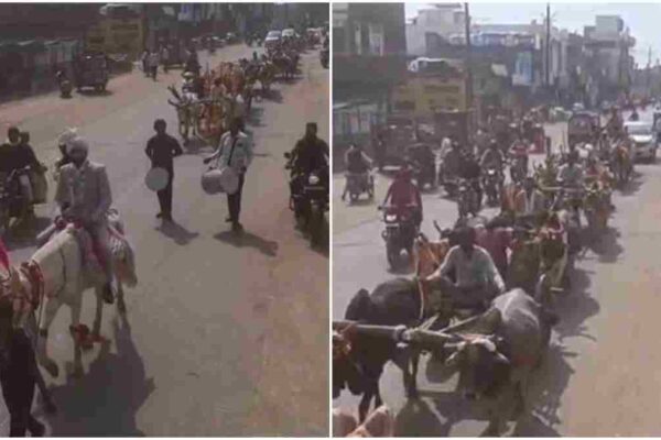 आगे घोड़ी पर दूल्हा राजा, पीछे 10–12 बैलगाड़ियां, विदिशा में अनोखी बैलगाड़ी बारात बनी आकर्षण का केंद्र