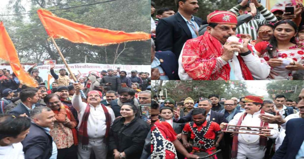 उज्जैन में अलग अंदाज में नजर आए सीएम डॉ मोहन यादव: बैलगाड़ी चलाकर जीता जनता का दिल, शंख-खड़ताल बजाई, धर्म ध्वजा लहराई और भजन भी गाया