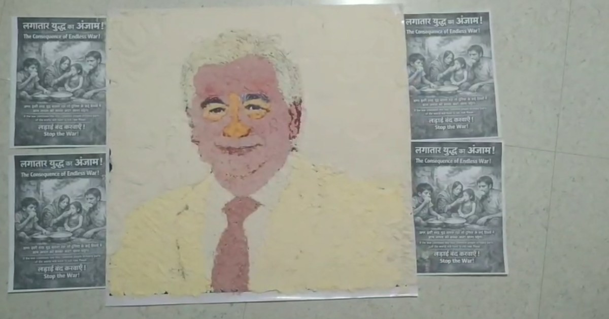 चैत्र मास की पारंपरिक परंपरा को निभाते हुए उन्होंने गेहूं, मक्का, ज्वार, चना और मसूर के आटे का उपयोग कर यह अनूठी कलाकृति बनाई, जो भारतीय संस्कृति और वैश्विक संदेश का संगम बनकर सामने आई है और दुनिया को यह सोचने पर मजबूर करती है कि युद्ध का असर आम लोगों की जिंदगी पर कितना गहरा होता है।