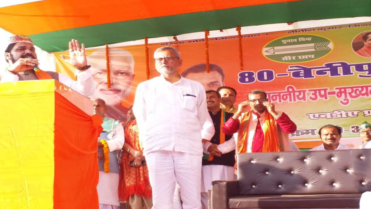 यह सभा जेडीयू प्रत्याशी विनय कुमार चौधरी के समर्थन में आयोजित की गई थी। सम्राट चौधरी ने कहा कि एनडीए की सरकार विकास, सुशासन और पारदर्शिता के रास्ते पर आगे बढ़ रही है, जबकि विपक्ष सिर्फ परिवारवाद और भ्रष्टाचार में डूबा है। उन्होंने जनता से अपील की कि वे विकास को वोट दें, न कि वंशवाद को।