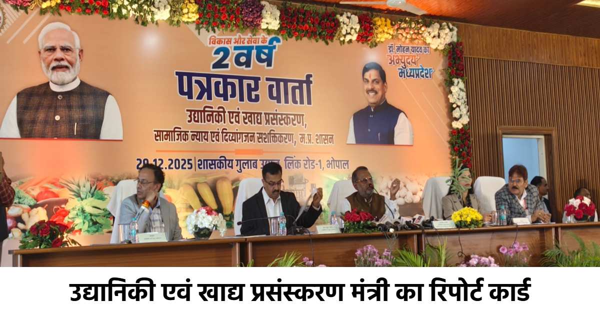 डॉ. मोहन यादव सरकार के दो साल पूरे होने पर मंत्रियों के रिपोर्ट कार्ड पेश किए जा रहे हैं। इसी कड़ी में सोमवार को मंत्री नारायण सिंह कुशवाह ने प्रेस कॉन्फ्रेंस कर अपने विभाग की उपलब्धियां और आगे की कार्ययोजना की जानकारी दी। उन्होंने कहा कि सरकार ने वर्ष 2047 को ध्यान में रखकर दीर्घकालीन रोड मैप तैयार किया है और उद्यानिकी रकबा बढ़ाकर 50 लाख हेक्टेयर करने का लक्ष्य रखा गया है।